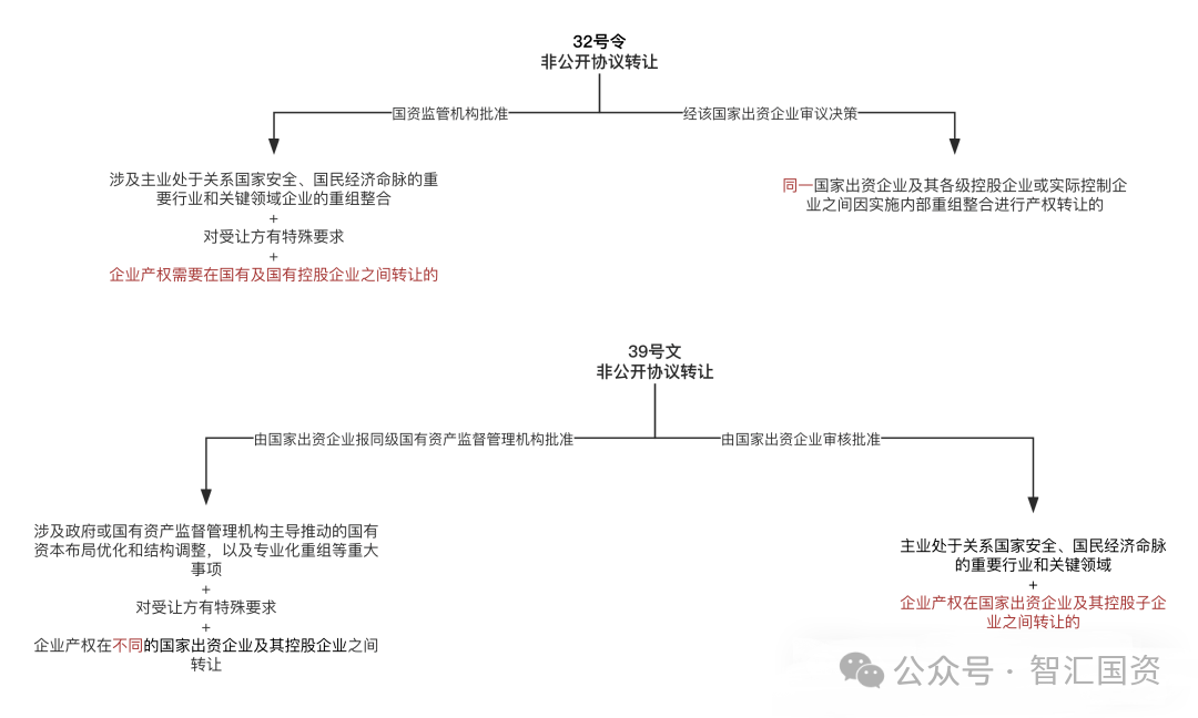 如何理解国资委39号文关于国有产权流转豁免进场条件的规定?不同国有控股企业进行产权非公开协议转让的审批单位为何?